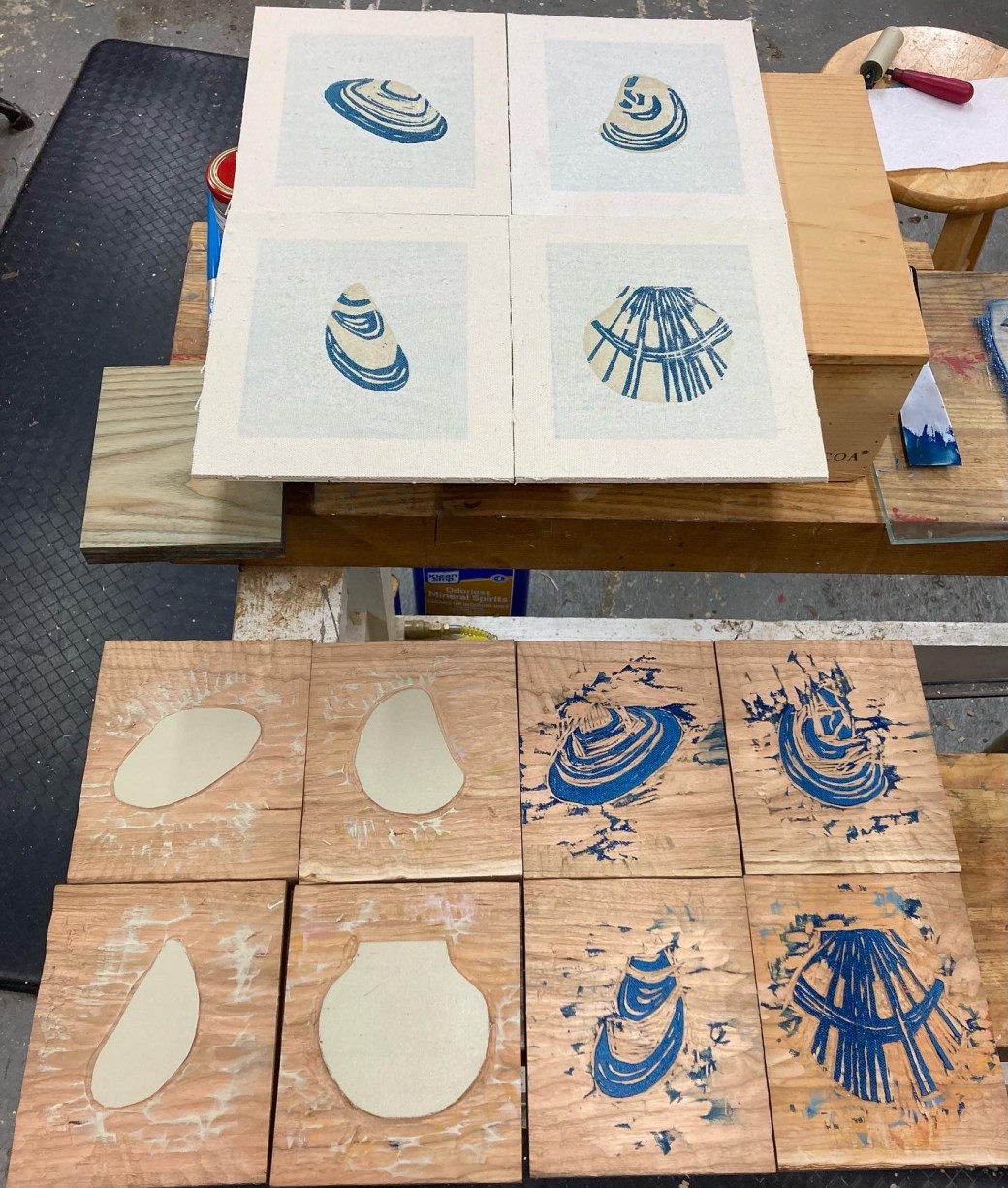 Lately, I have been building split-cane bamboo flyrods, and carving woodblocks for printing.